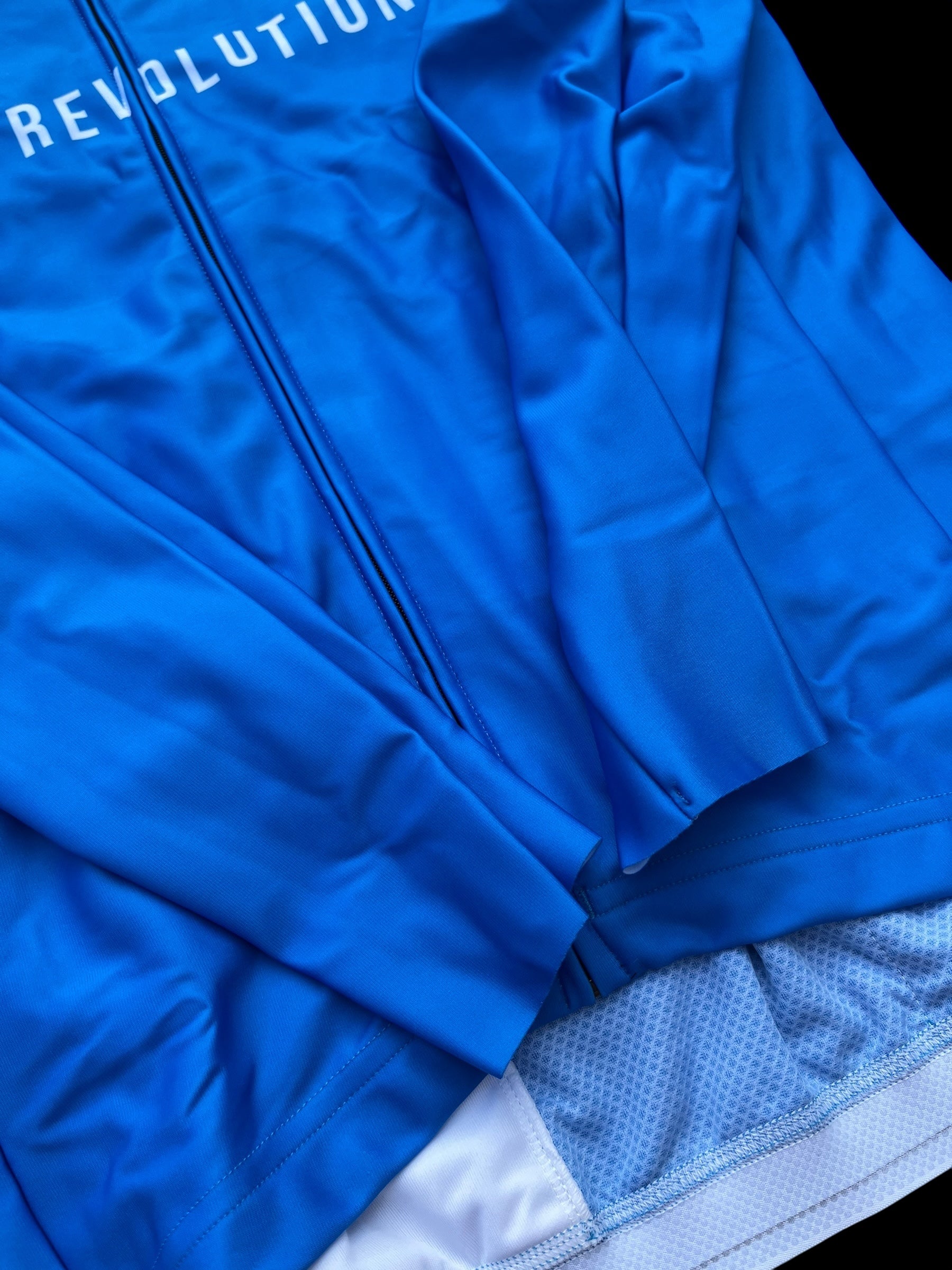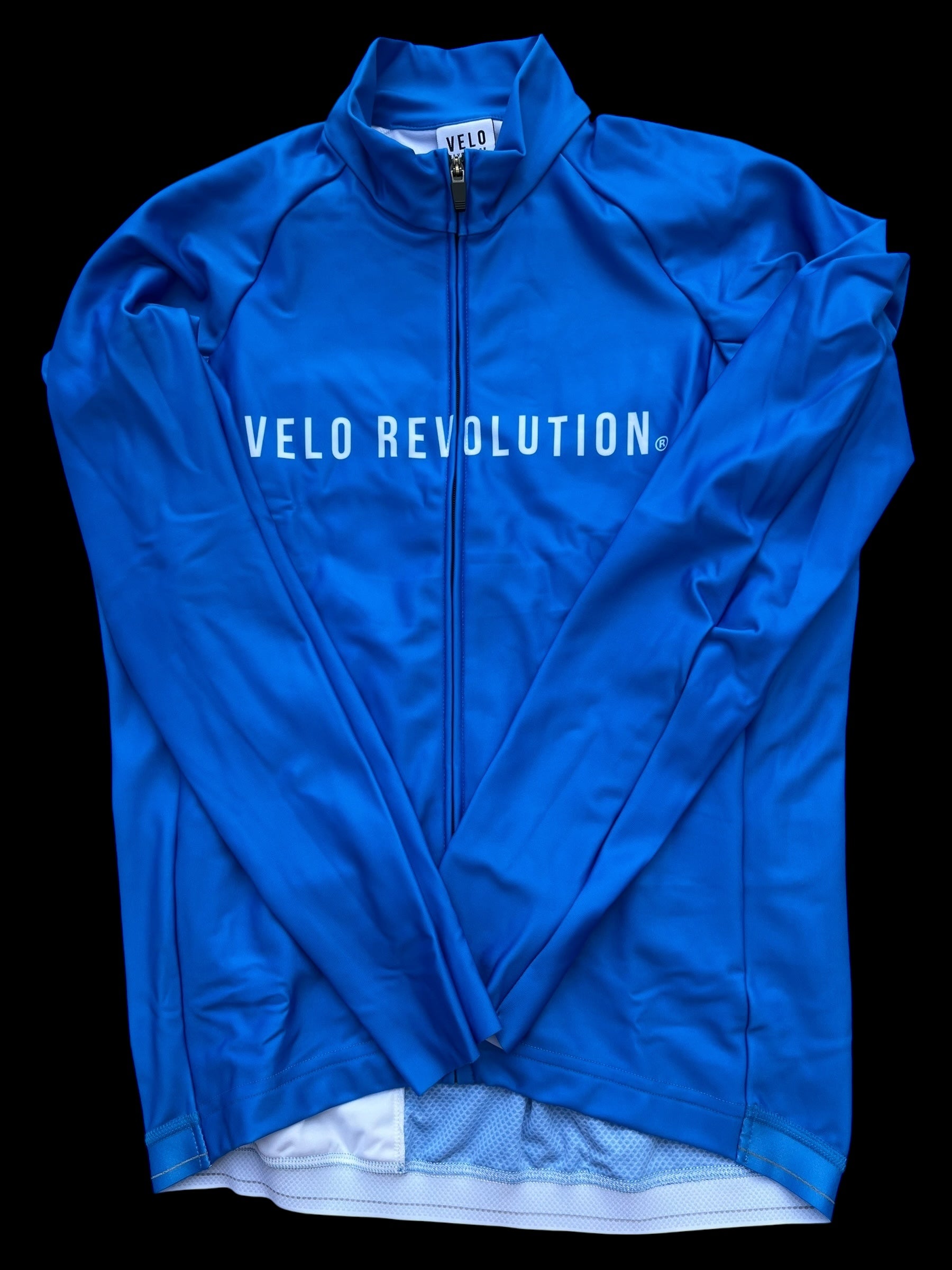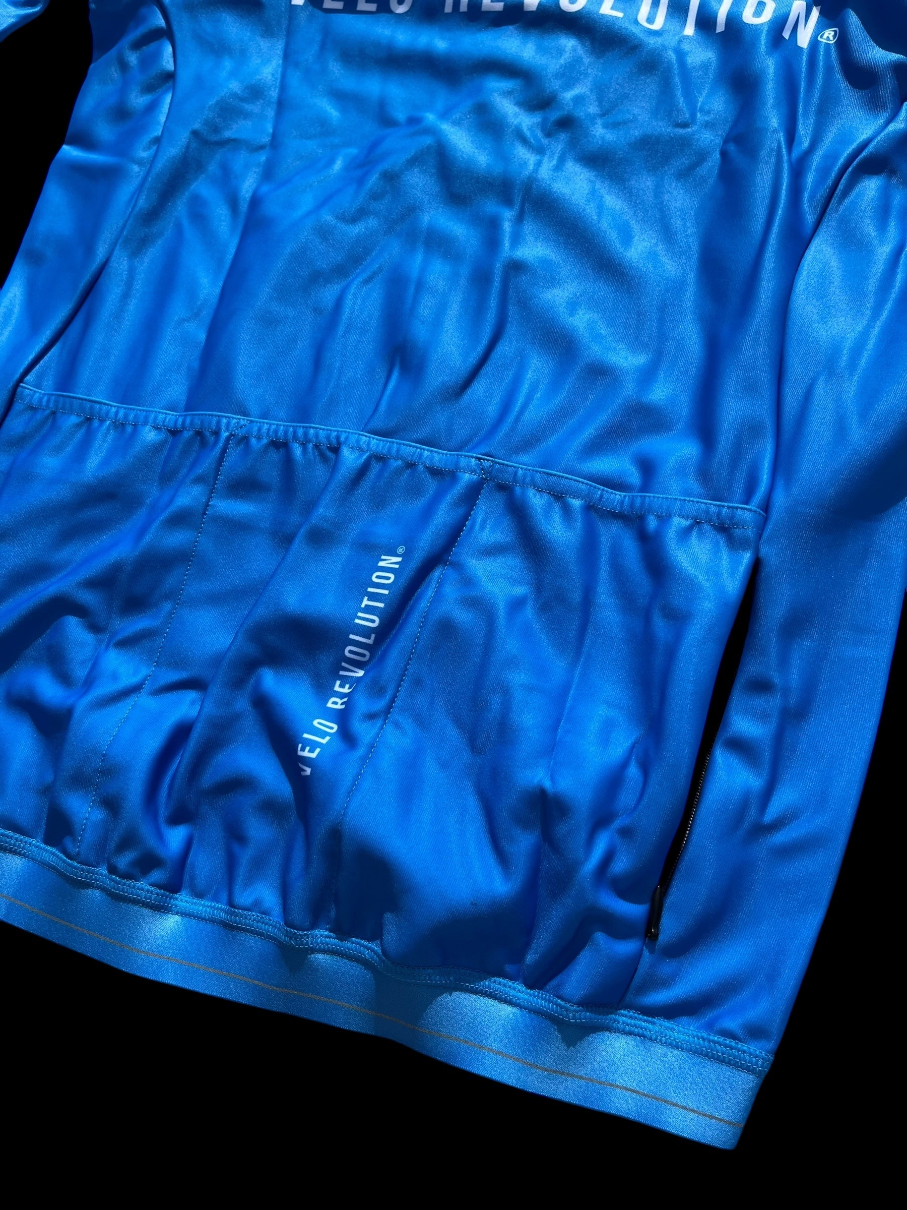 Color: OCEAN BLUE with our long VELO REVOLUTION motif on front + rear and again vertically on the rear pocket.