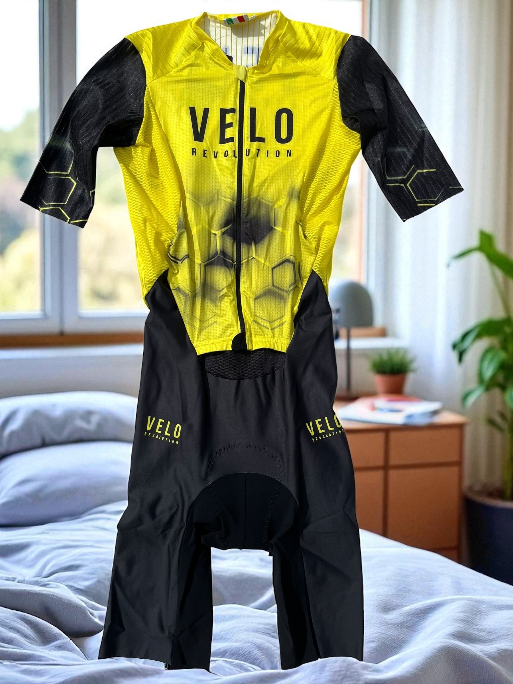 TRIATHLON AERO SHORT SLEEVE SUIT - SPEEDCHEAT HONEYCOMB YELLOW