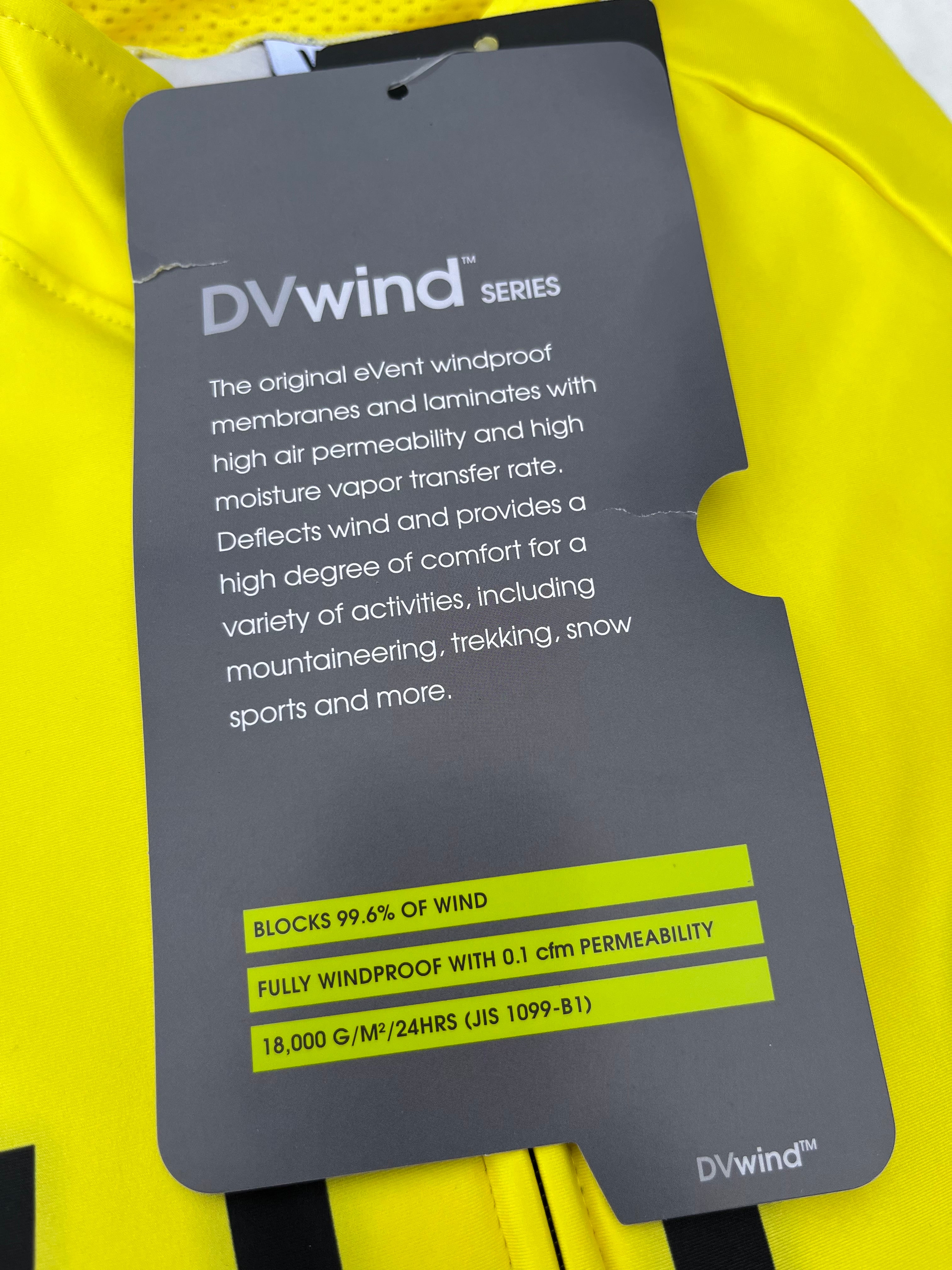 - eVent DVWind textile which Blocks wind/rain whilst instantly venting moisture and body heat. Using Direct Venting Technology the athlete stays comfortable even when they are working up a sweat and the weather may have turned.