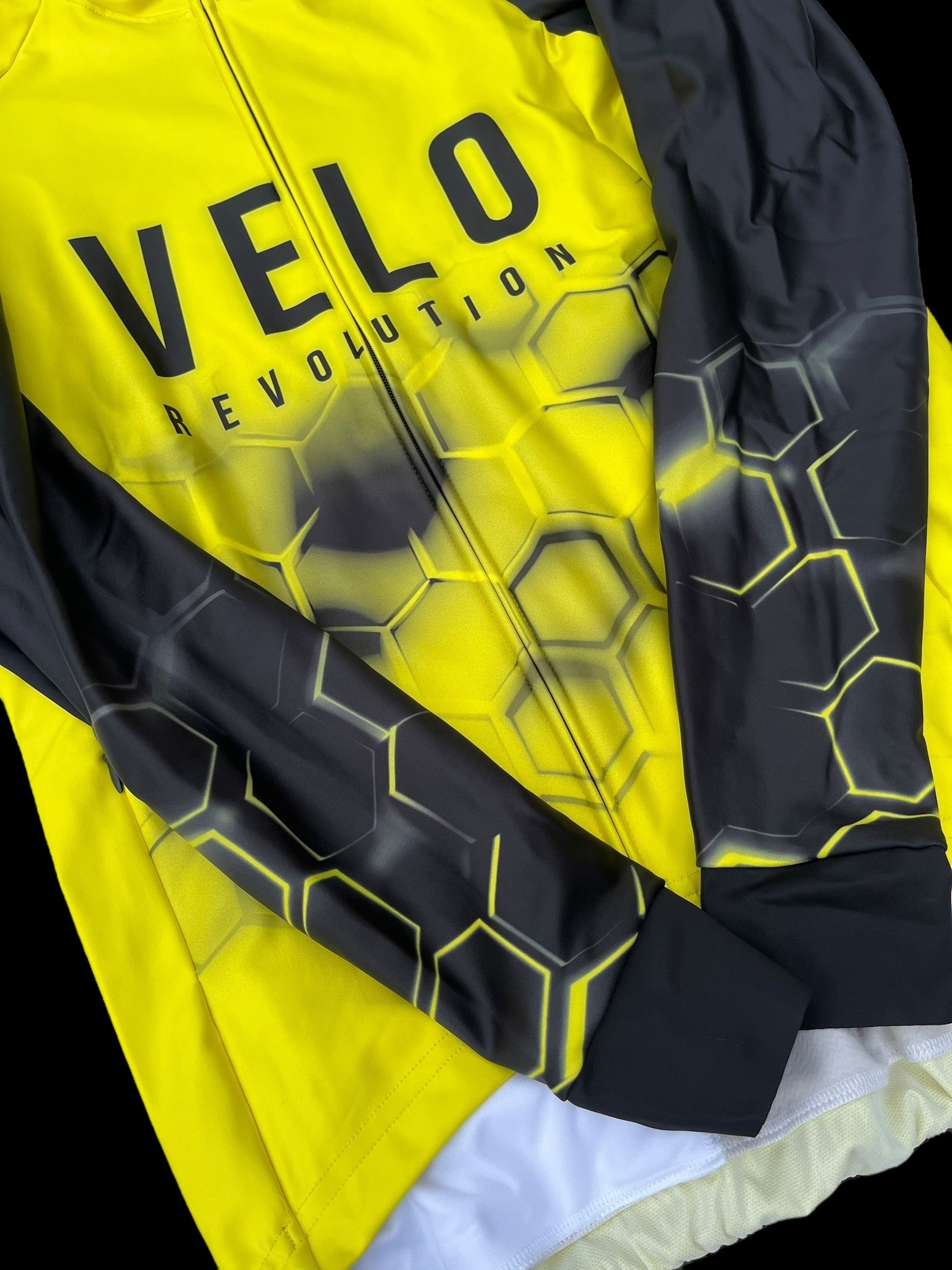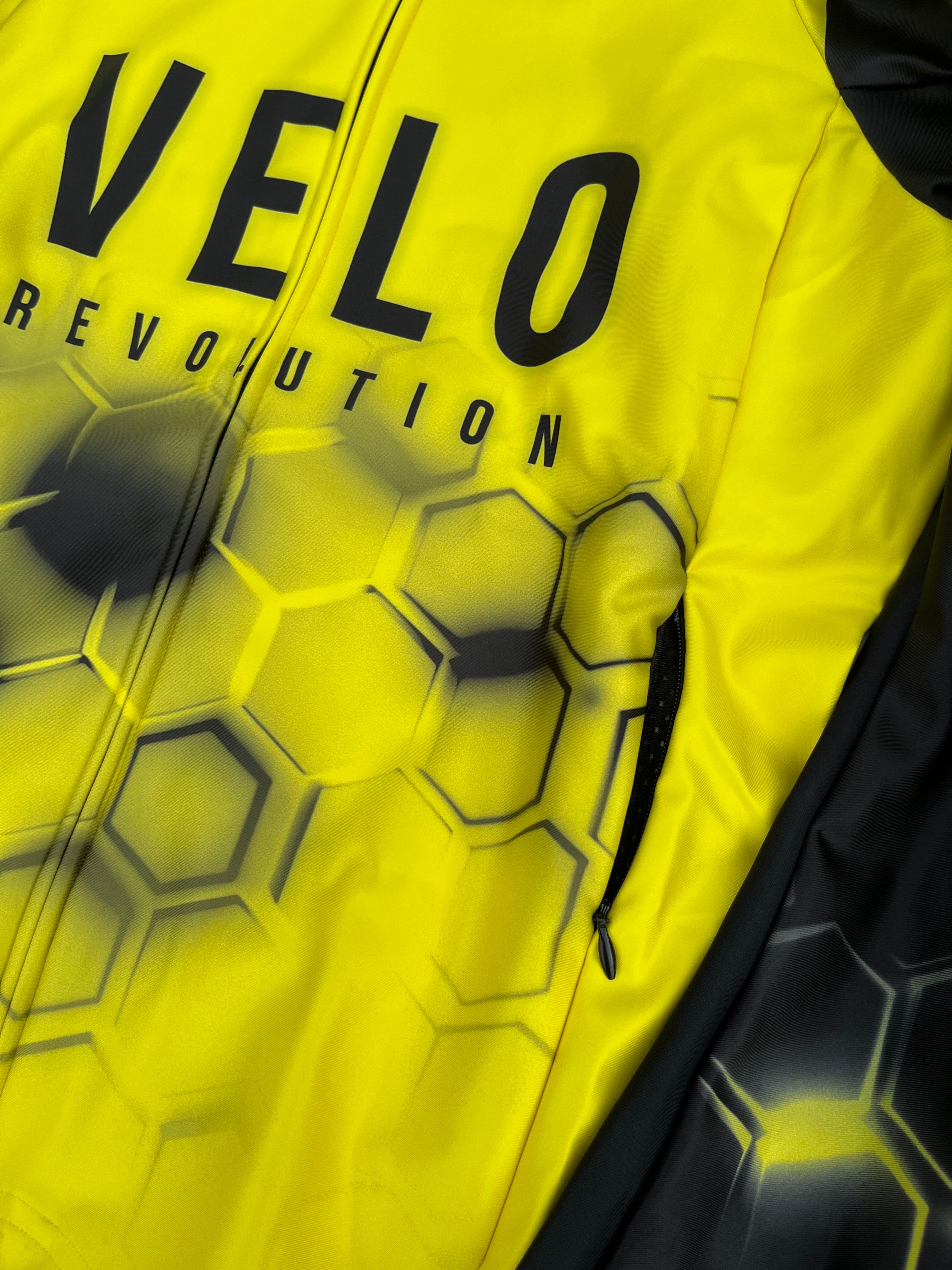 Color: YELLOW | BLACK SLEEVES | BLACK + YELLOW HONEYCOMB FEATURES.