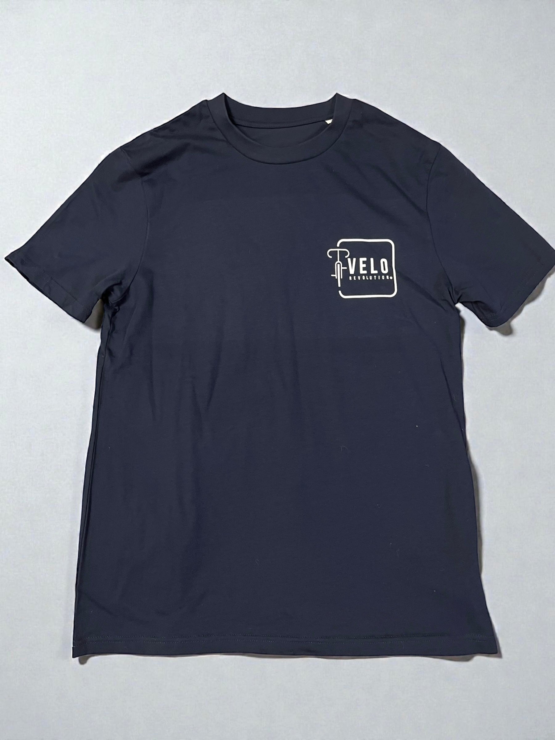 Color: NAVY TEE with our Brand Motif in White, alongside The Bike.