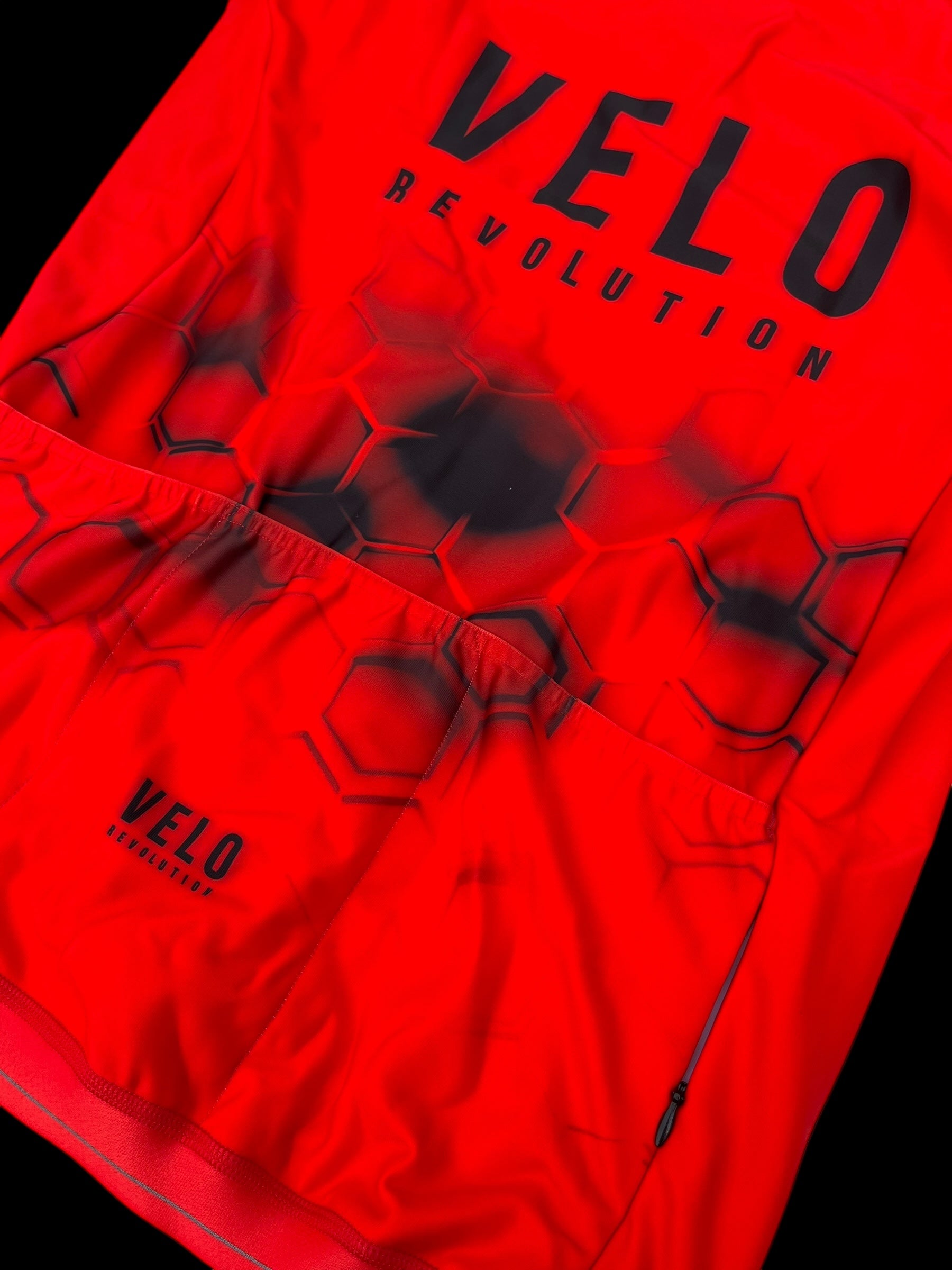 Color: RED | BLACK SLEEVES | BLACK & RED HONEYCOMB FEATURES.