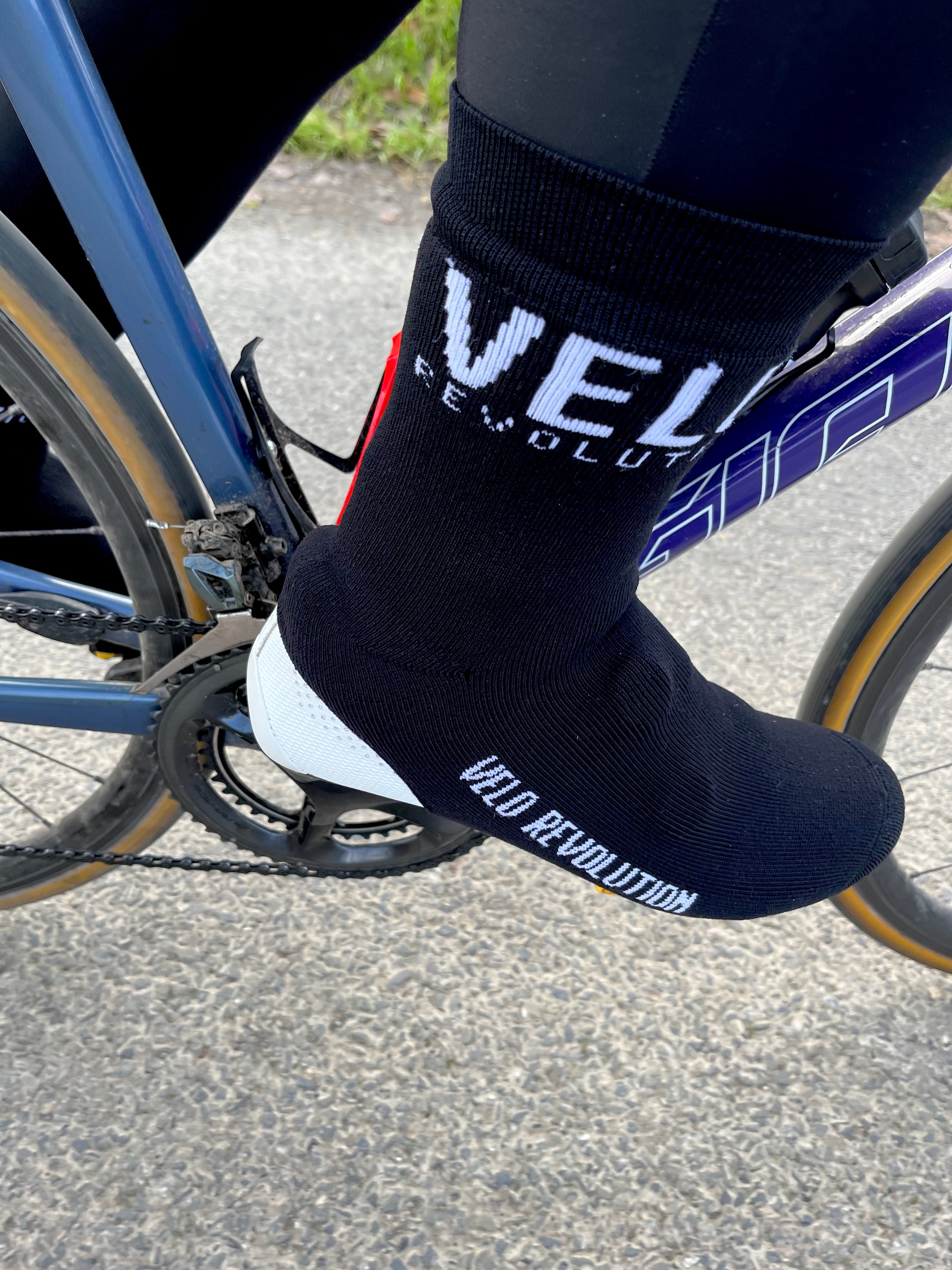 These are one of those products that just work, they add a little bit of warmth but no weight or bulk and are surprisingly great at keeping road dirt and grime off your cycling shoes. During the colder months, these items add an extra layer of insulation. We even know, they will fit over our very own VELO REVOLUTION® slick/slim H20 Rubber Waterproof overshoes if you prefer to double up by placing them over the H20s for those days fit for the ducks or the polar bears.